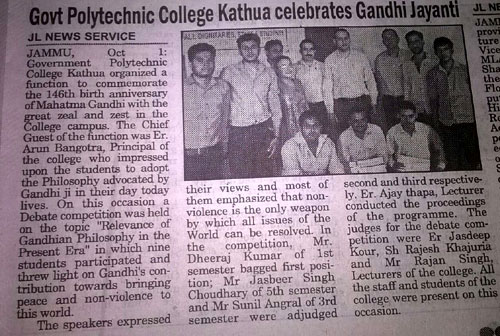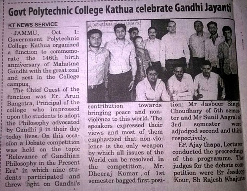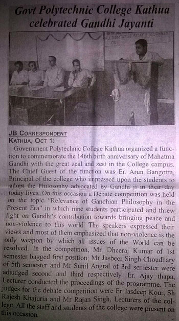 Gandhi Jayanti celebrations at Govt. Polytechnic Kathua